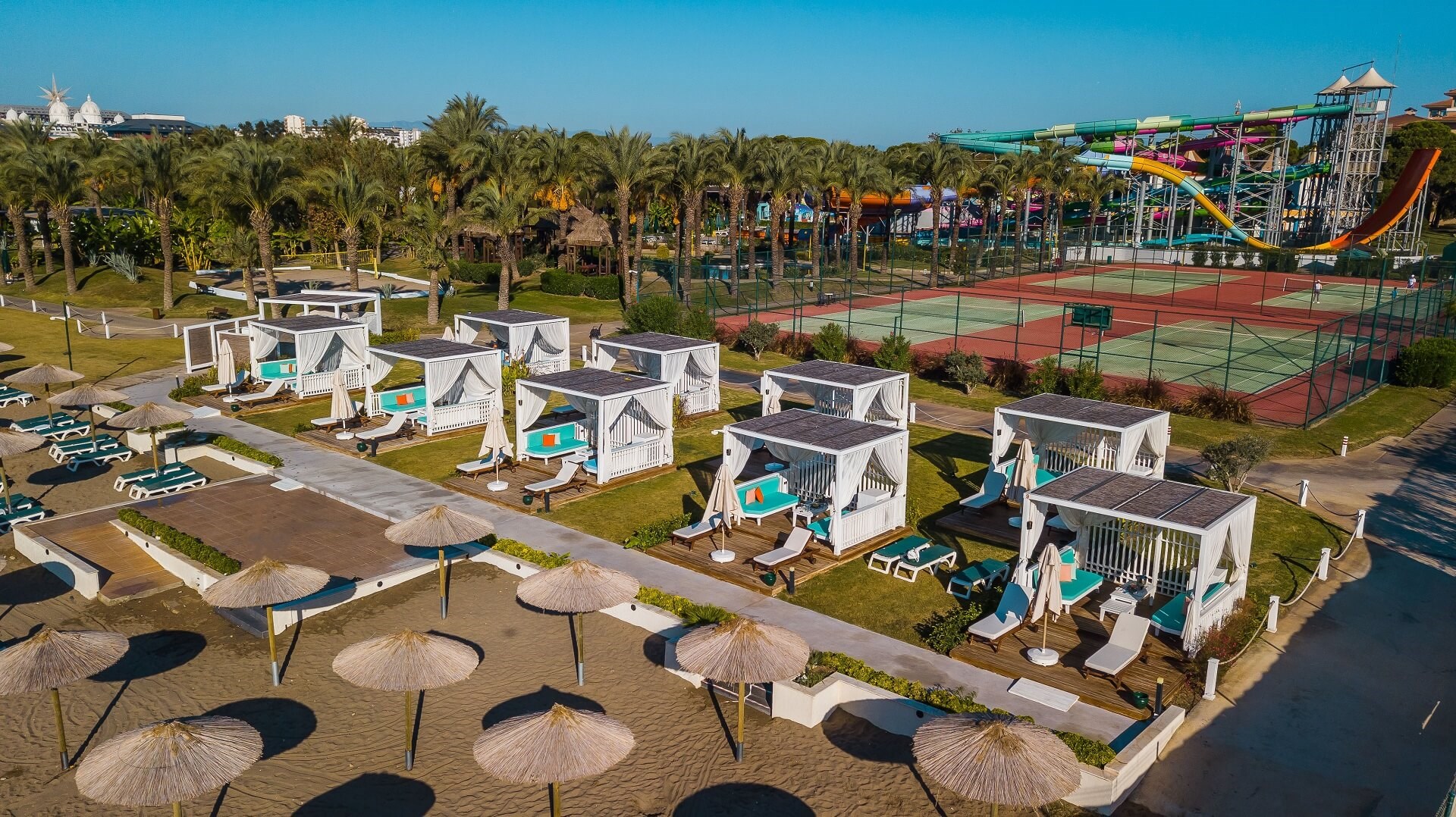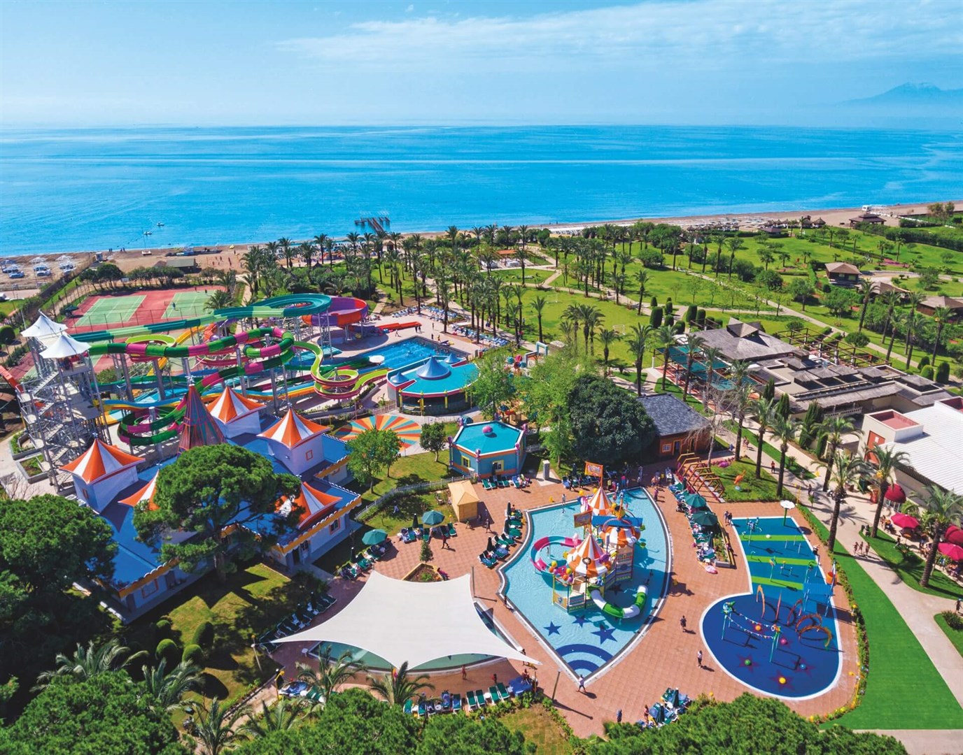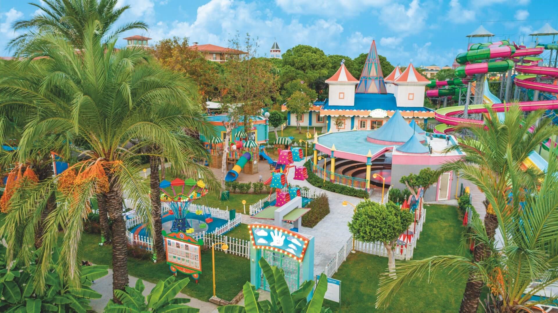 “high end” all inclusive snídaně, pozdní snídaně, obědy a večeře formou bohatých a chutných švédských stolů včetně nápojů • nealkoholické, místní alkoholické a vybrané prémiové importované alkoholické nápoje • dětské a vegetariánské menu • 24-hodinový all inclusive servis v lobby baru • čerstvé ovocné šťávy ve Vitamin baru • pestré občerstvení během celého dne v areálu hotelu i na pláži • čaj, kvalitní káva, koláčky a sladké pečivo podávané v hotelové cukrárně • zmrzlina • lehké noční občerstvení a snacky • minibar v hotelovém pokoji (doplňovaný denně) • mezinárodní hotelové animace pro děti i dospělé během celého dne • dětský miniklub Kids World (hřiště, vzdělávací centrum, dětské kino) • slunečníky, lehátka, matrace a osušky u bazénu a na pláži • wifi připojení