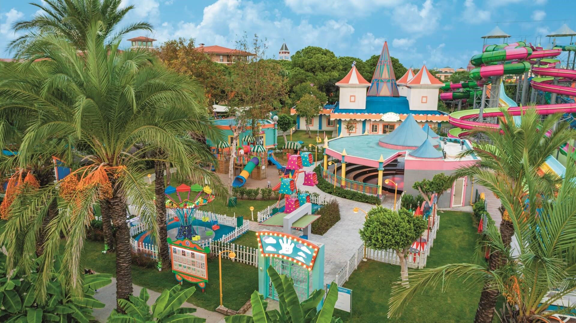 prostorná hotelová hala s recepcí a lobby barem s 24 hodinovým all inclusive servisem • možnost wifi připojení v celém areálu i na pokoji zdarma • internetová kavárna (30 min. zdarma) • zrekonstruovaná hlavní restaurace s venkovní terasou • 6 a‘la carte restaurací (italská, japonská, sushi, mexická, turecká a rybí - za poplatek, rezervace předem) • 7 barů (Lobby bar, Vitamin bar, Disco bar, Aloha Beach bar, Sunset snack bar, Pool bar 1, Pool bar 2) • IC Cafe - nabízející široký výběr kvalitní kávy, čajů a likérů • bazénový komplex sestávající z 5 venkovních bazénů • nový aquapark s tobogány a s rozmanitými stříkajícími vodními atrakcemi • relaxační bazén • dětský bazén • vnitřní bazén • masáže a beauty centrum (za poplatek) • kadeřnictví • sauna • turecké lázně • směnárna • amfiteátr • hlídání dětí • miniklub Kids World (hřiště, vzdělávací centrum a dětské kino) • konferenční místnost • obchůdky se suvenýry, kůží a plážovým oblečením • minimarket • pronájem aut • fotograf