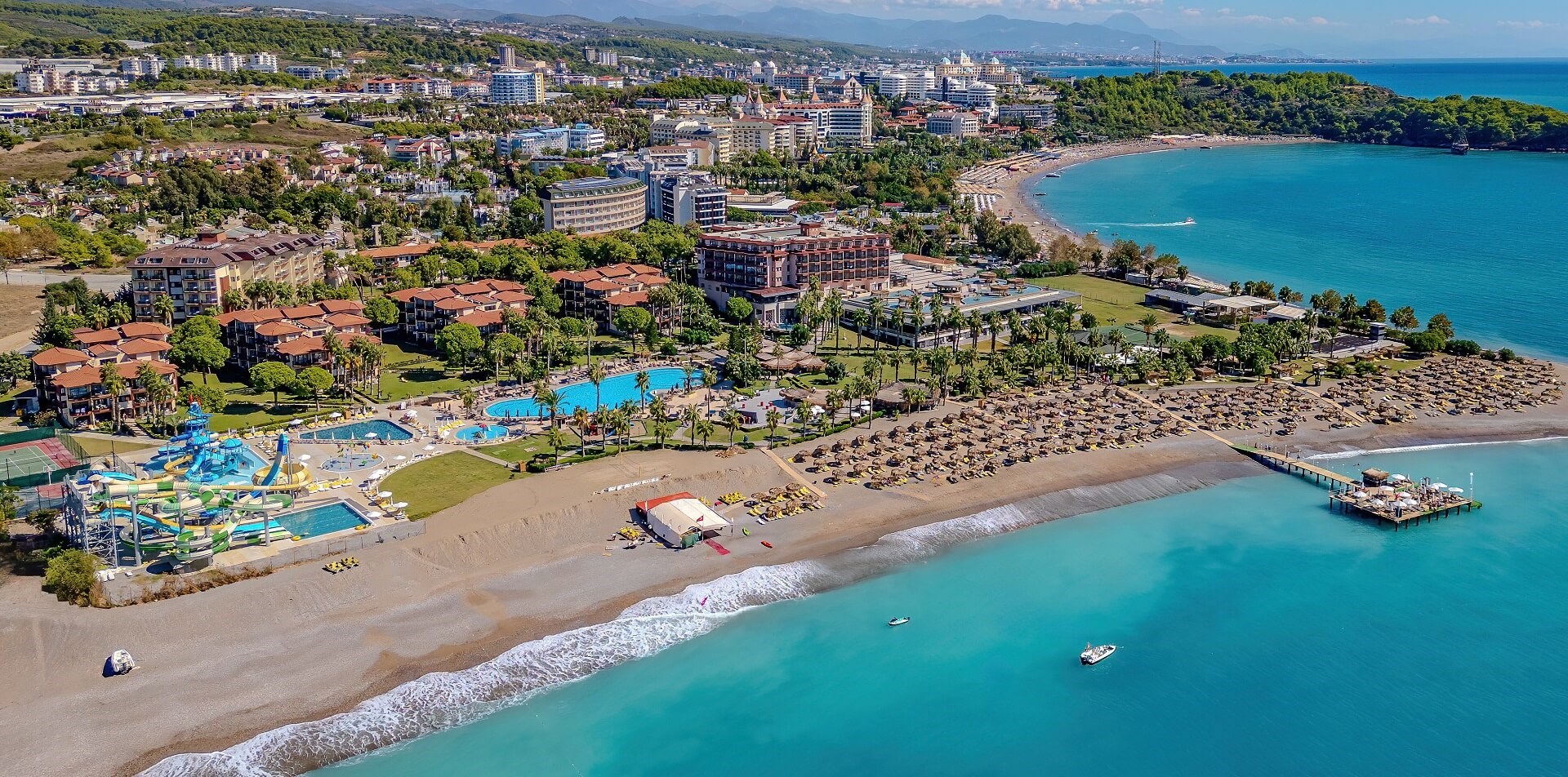 oblíbený hotelový komplex přímo u široké písečné pláže • ve středisku Okurcalar • 35 km od centra Alanye • 25 km od střediska Manavgat • 90 km od letiště v Antalyi